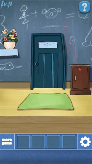2、进入房间后,点击右侧的棕色柜子,从中取得开门的钥匙。