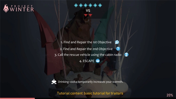 冬日计划(ProjectWinterMobile)是一款多人在线生存游戏,背景设定在一片冰天雪地的雪山之中。玩家将扮演一群素不相识的幸存者,直面残酷的生存考验。游戏里,玩家既要收集资源、完成任务以呼叫救援,还得警惕潜藏其中的背叛者。背叛者的存在让局势充满变数,幸存者们必须依靠紧密的合作与顺畅的沟通来辨别潜在危险,保障自身的安全与生存。