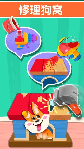 宝宝家园清洁是一款休闲益智启蒙小游戏,内容丰富多样。在这个软件里,宝宝能扮演小狗,帮忙修理房子。小狗的房顶坏了,宝宝得赶紧修复。修好房顶后,还要给房子涂上漂亮的油漆,小狗见了特别开心。完成这个任务,宝宝能激发创造力,学会修理和装饰房子的方法。
