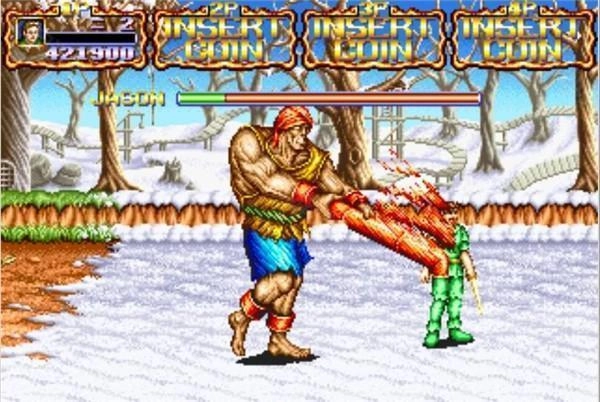 壮汉JASON:巨人一般,威力极大。会用水管挥舞、抓住人用水管敲、打掉一半血之后会开始召唤一个大铁球来砸人(被砸中会掉很多血啊)。打败壮汉的结局:壮汉体力不支,被自己召唤的大铁球压死。