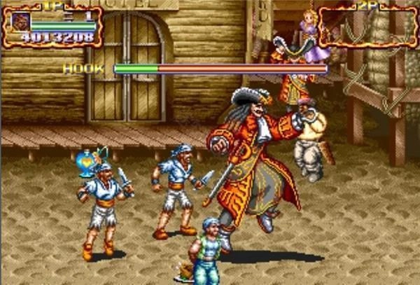 铁钩船长HOOK:终极BOSS,左手持剑右手铁钩的船长。招数用剑刺人,或者跳到跟前抓住人,然后又钩子捅,还有就是开枪,其实不是很难打,不是因为他强,而是会出现大量各种的手,还有第五关的BOSS总是后面的炮台开炮。(最后结局:战败逃跑。一会儿后回来。然而他的铁钩不慎卡在鳄鱼的肚皮里。结果HOOK被鳄鱼吃掉)