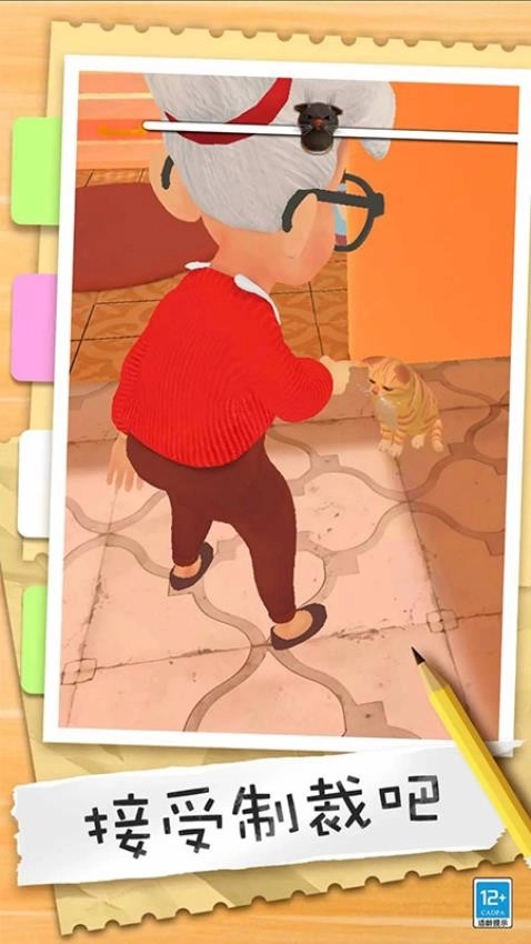 1、游戏设有主线与支线任务。任务可能要求你在不被发现的情况下,将某个特定物品带到指定地点,或者在限定时间内打翻一定数量的物品。 2、搜寻和完成任务是推进剧情、解锁新区域和获得奖励的主要方式。 3、当老奶奶发现你并开始追逐时,游戏进入紧张的逃脱阶段。你需要快速规划路线,利用房间结构摆脱她。
