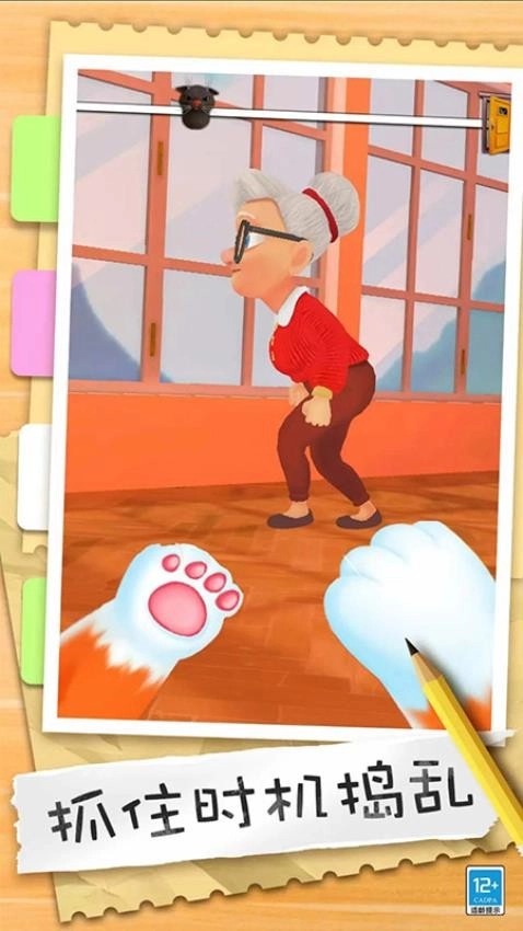 1、采用独特的低视角,完美模拟了猫咪的观察高度。你可以轻松跳上书架、钻进沙发底、跃上窗台,以真正的猫咪方式探索世界。 2、老奶奶是房间里的“终极BOSS”。她拥有动态的警戒系统,听力敏锐,视线会随着你的动静而变化。 3、通过成功捣乱和完成任务,你可以获得“捣乱点数”,用于解锁不同品种的猫咪和特殊能力,例如“无声肉垫”或“瞬间冲刺”。
