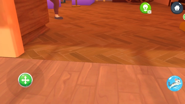 3、通过虚拟摇杆或点触移动控制猫咪。接近可互动物品时,会出现互动提示,点击即可执行捣乱动作。