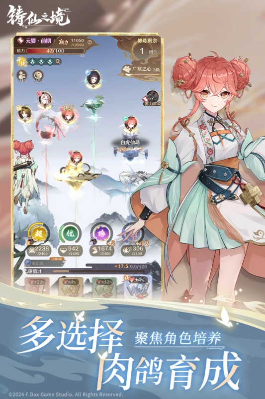 给新手的一点小建议:前期可以考虑抽取某个角色来过渡,这样能保证战斗中的持续能力,关键是要尽快解锁四级的铸仙相关设施;后续角色进阶时,也可以选择抽取另一个角色,具体看自己的偏好。(有其他玩家分享了很详细的攻略,我就尝试走个不同的路线)