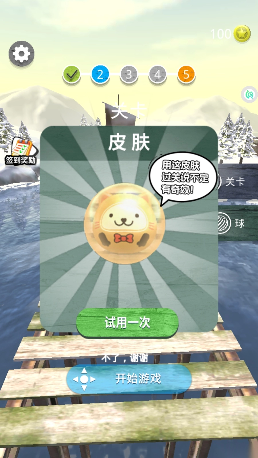 第二关同样轻松,只要控制好小球的滚动方向就能完成挑战,还能获得金币。