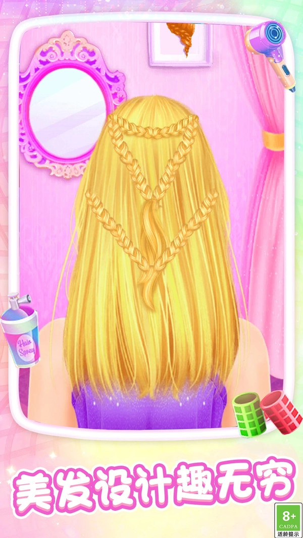 基础美发操作:借助拖拽、点击之类的手势来完成剪发、染发、烫发等流程,操作简便,容易掌握。