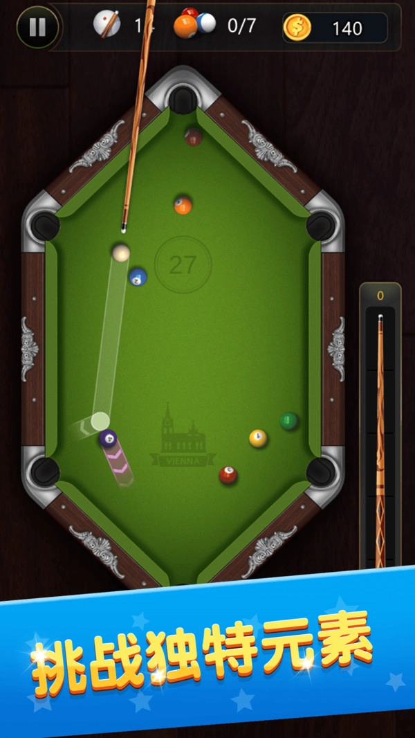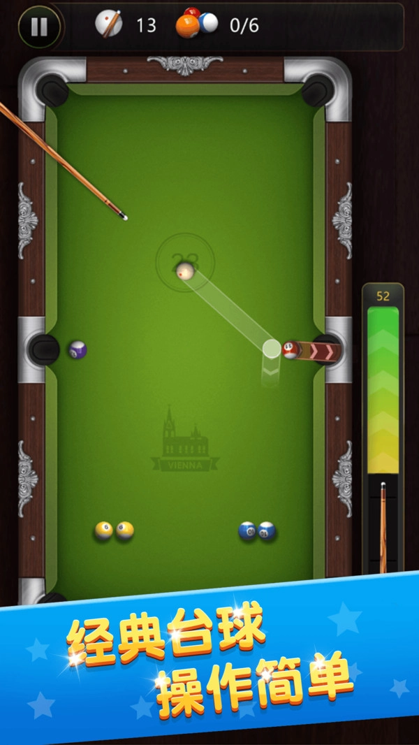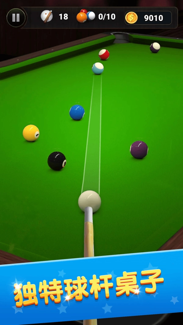 3、游戏对真实台球的运动轨迹进行了精准还原,每次击球的碰撞效果都和现实中的表现完全一致,高杆、低杆等技巧都能轻松实现。