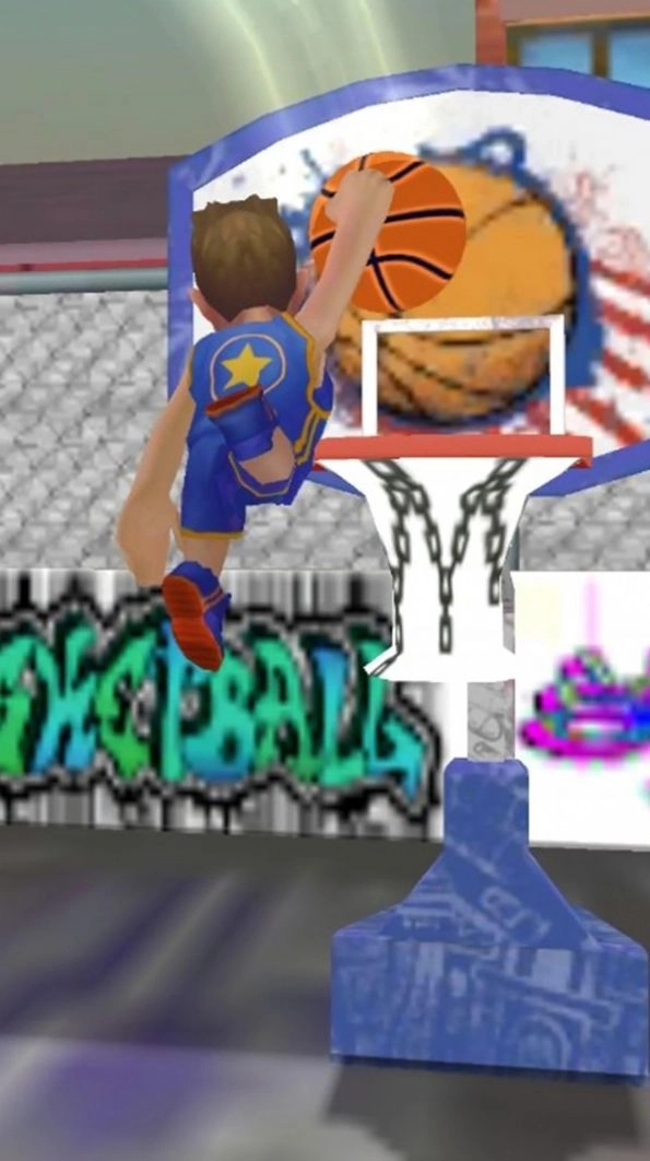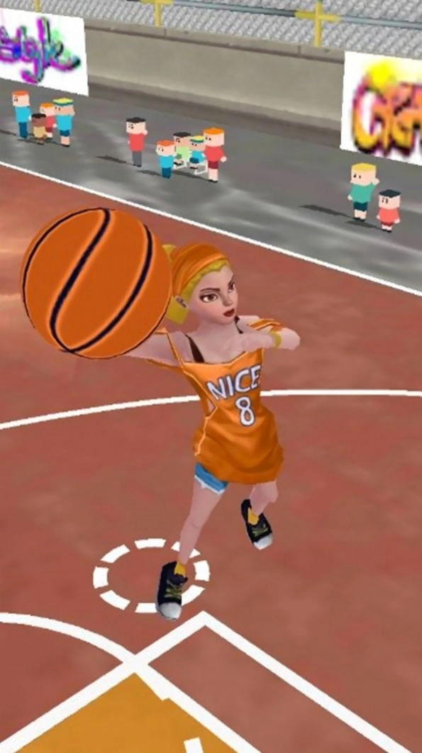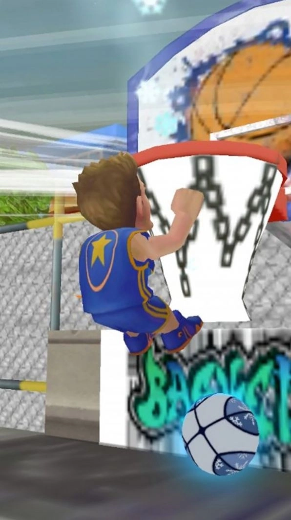 2、在这个充满卡通风格的场景画面里,你能够开展自由的投篮挑战,尝试将球投进球框。