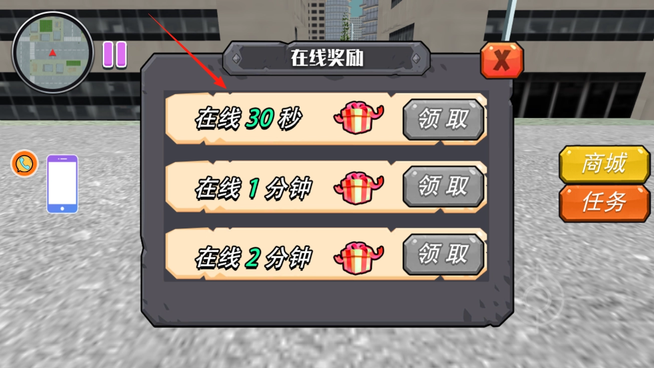 等待在线时长,满足条件领取对应奖励,积累资源,用于解锁内容,体验在线奖励机制。