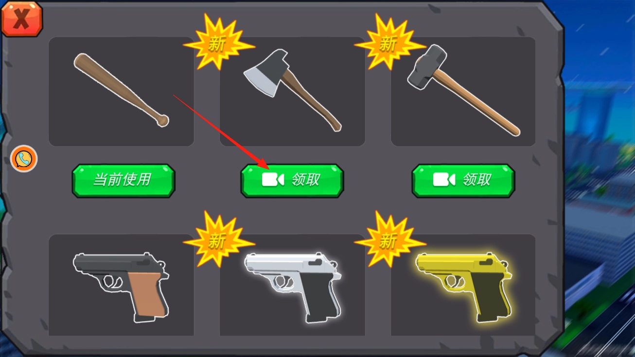 点击领取获得武器,通过观看视频解锁新道具,提升战斗能力体验武器获取玩法。