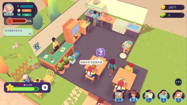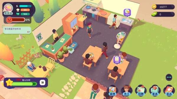 随着接待的客人日益增多,餐厅积累起一定口碑后,你就能通过招聘服务员与厨师来提升服务顾客的效率,作为店长的你便可以摆脱繁琐事务,轻松管理啦!