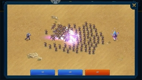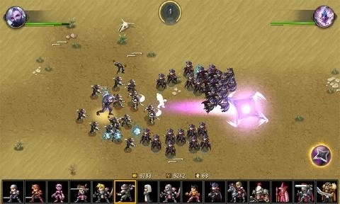 游戏界面的顶部设有倒计时功能。玩家能够在底部挑选合适的士兵。一旦倒计时结束(时间归0)且拥有足够的金钱,士兵就会自动发起攻击。