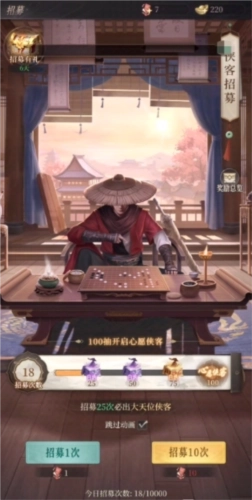 1、侠客获取:游戏里侠客的获取难度较高,玩家可通过剧情模式推图冒险快速提升战力,过程中能得到不少侠客;此外,还能通过招募系统获取大天位侠客,助力自身战力显著提升。