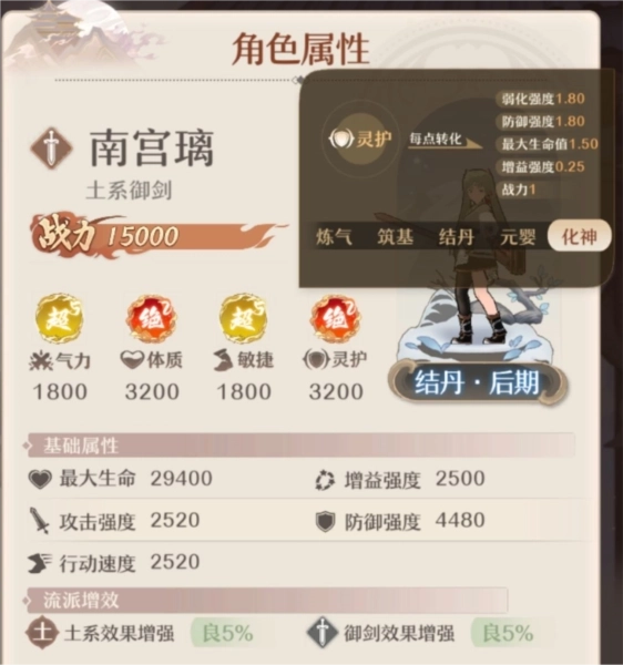 游戏里的角色设有多个修仙阶段,处于不同阶段时,初始属性所能转化的战术属性点数存在差异,具体情况可参考下图。