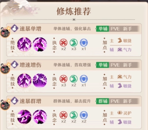 在修炼过程中,执念能为我们带来可观的属性加成,且不同方向的技能对应着不同的属性要求。想必有些小伙伴会好奇,面对这么多执念卡,究竟该怎么搭配才好呢?