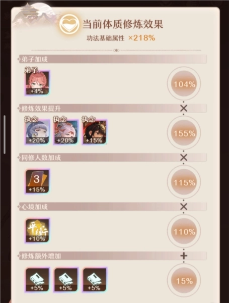 点击修炼后,我们点击详情也能看到当前执念给我们带来的修炼效果加成。