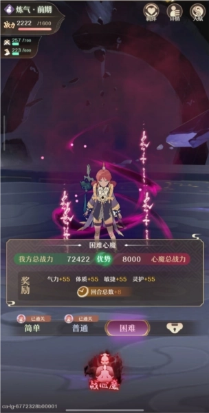 在游戏里每次完成大阶段的晋升时,都会触发心魔战斗。这场挑战的难度和之后的修炼天数(也就是回合数)有着直接的关联,不过好在游戏允许失败重来,所以我们可以优先去尝试高难度的挑战。