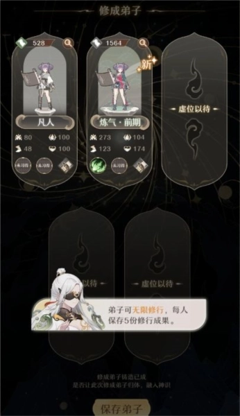 在这款游戏里,玩家能依照个人喜好自由培养各类弟子,完全没有其他游戏中类似于升星需要消耗狗粮之类的限制。这是因为它具备一套专属的养成机制——游戏内的修行系统。