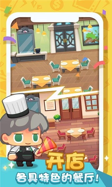 疯狂中餐厅游戏采用Q版人物画风,玩家在游戏中化身餐厅老板,各类风格迥异的美食餐厅等待解锁,可招募天赋出众的高级员工,通过研发多样美食,逐步拓展专属的商业版图。