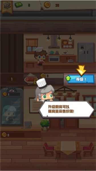 游戏开局时,玩家得手动操作:先点击让厨师启动炒菜流程,接着安排服务员搭乘电梯去送餐。等积累到足够金币,就能招募厨师长来负责监督,之后员工便会自动制作料理。此外,金币还能用于升级店铺的规模,以及提升员工的上菜效率与餐厅的整体赚钱速度。