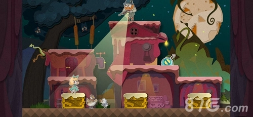 7、从高台上跳下把老鼠砸晕,再把晕过去的老鼠放进右侧的齿轮动力装置里。