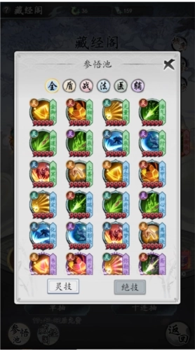 3.灵石商店:可依据当前角色的养成进度,结合卡级、卡关的实际情况,酌情选购功法残页、玄灵根等道具。