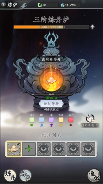 然后炼丹时要把红色、橙紫色的丹药挑出来放置一旁,切记不要使用(这一点要重点关注)