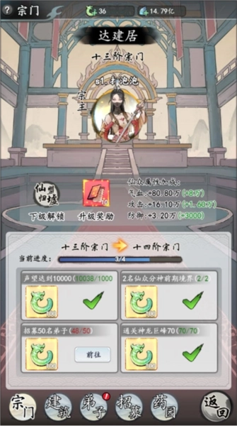 5.宗门建筑:招募弟子入驻建筑后,能够持续获取各类资源