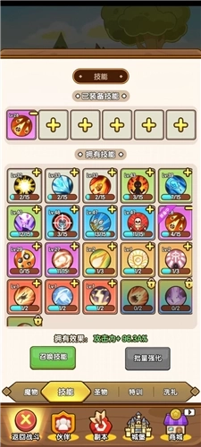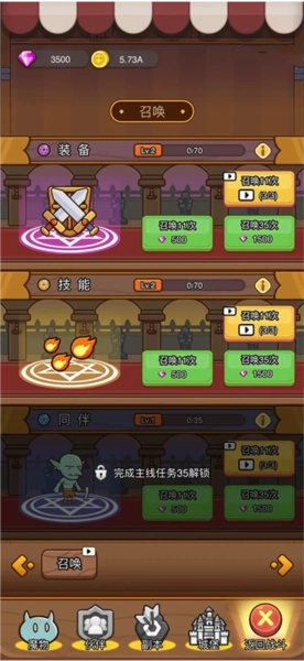完成主线任务25后,就能解锁商城里的技能召唤功能。给小怪物装备技能后,它的攻击属性会发生质变,在闯关时还能释放技能对敌人造成强力打击。不同技能的伤害效果各有差异,只要装备技能并开启自动施法,就能让技能自动释放,助力快速通关。