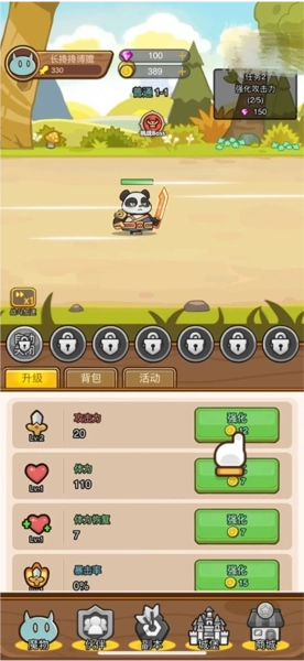 游戏开局就会直接进入游玩环节啦~我们要化身为一只功夫熊,去对抗那些入侵的怪物敌人,凭借持续提升的属性来闯过一道道难关!