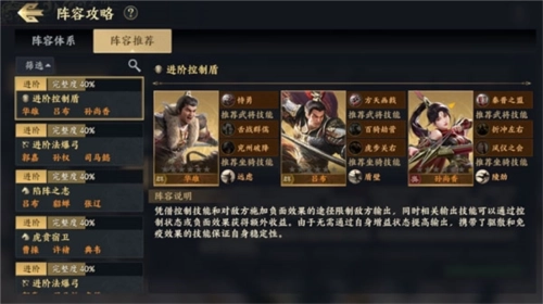 控制盾体系对拥有较多主动技能的队伍具有克制作用,它借助控制与减益效果来约束敌方的输出能力(像甘宁的眩晕、吕布的沉默、周泰的沉默和减伤这类效果都能起到作用),并且依靠技能之间的连携效应,让每个回合都能产生稳定的伤害输出。