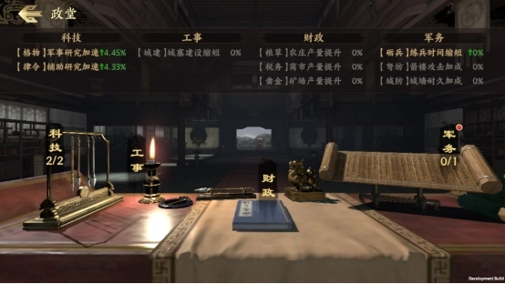 政堂是官府处理政务、治理地方的场所,主公可前往此处,通过任命合适的武将担任官职来处理城中各项事务,从而获取多种属性加成。可供任命的官职类型,会随着政堂等级的提升逐步解锁;政堂等级越高,开放的官职种类就越多样,任命武将后能带来的加成效果也会更加丰厚。