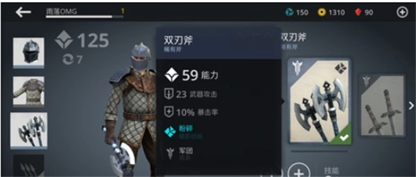 2、实际上双刃斧也算得上是一把不错的武器,毕竟它属于精英级别的装备,能力值达到59,攻击力有23点,还带有10%的暴击率和粉碎效果。对于处于游戏前期的玩家而言,能拿到这样一件精英武器已经相当不错了。