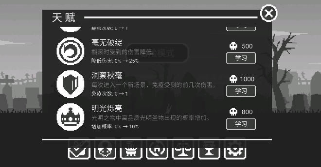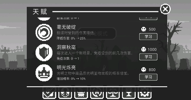 2、每次挑战失败后都能获取一定数量的灵魂,这些灵魂可用于提升自身等级,也能用来购买天赋。