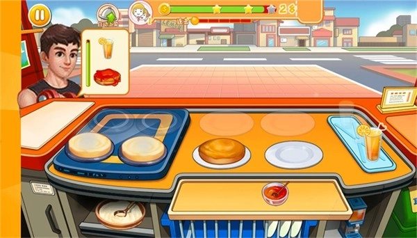 2、模拟真实的烹饪过程考验玩家的操作技巧,时刻注意顾客的心情,提供更好的服务,以获取更多好评记录。